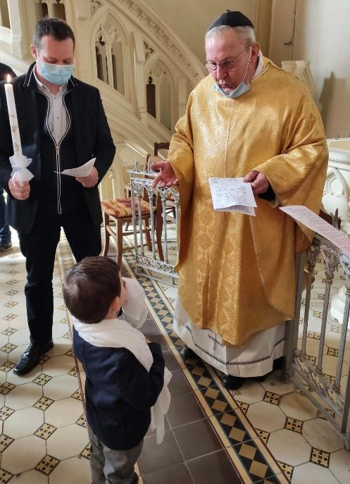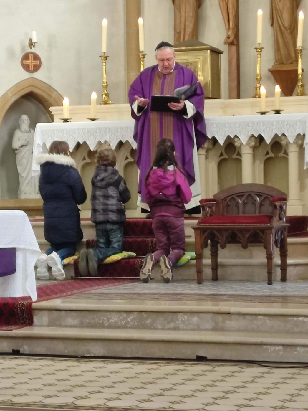 En l’église de Halstroff, les 3 enfants ont reçu l’imposition des mains, force de Dieu pour continuer le chemin malgré les difficultés.