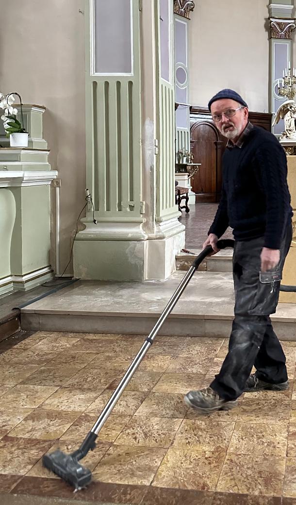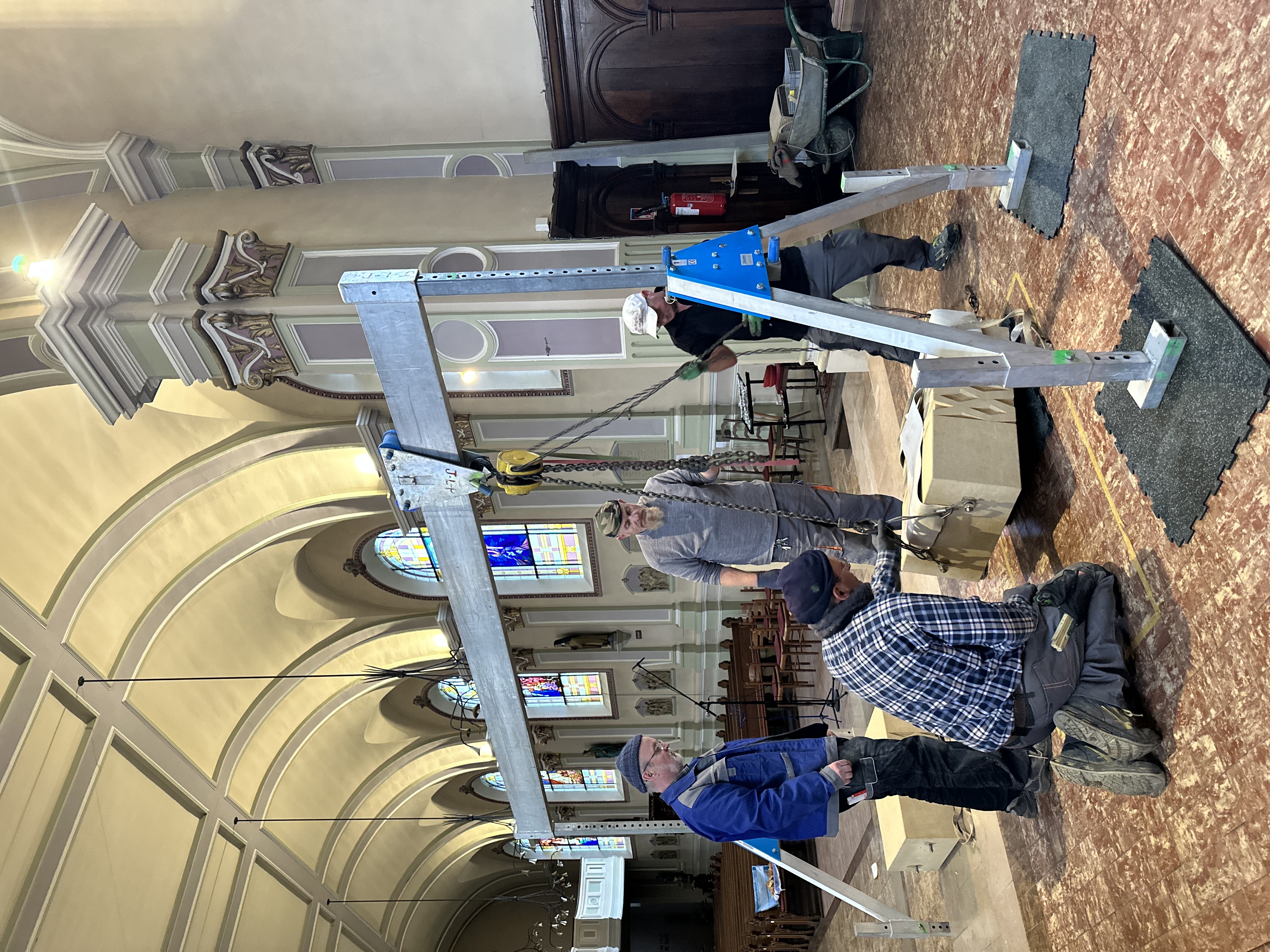 Par précaution, le conseil de fabrique a confié à l’entreprise spécialisée Jean-Charles SOMMEN de Rémeling qui s’en est acquittée avec brio, la charge d’aider Toun à transporter puis à installer cette nouvelle table eucharistique.