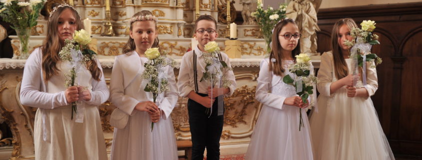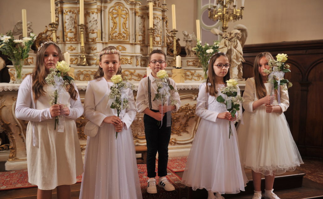 L’église Sainte Catherine de Waldwisse était en fête en ce premier dimanche du mois de Mai où 5 enfants de notre communauté ont reçu pour la première fois le sacrement de l’Eucharistie. La célébration présidée par l’abbé Vincent était solennelle, rehaussée par les chants de la chorale et l’église magnifiquement parée pour la circonstance. Merci à tous les acteurs sans qui cette messe n’aurait pas été aussi priante et festive.