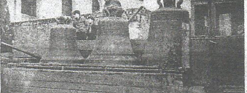 Trois nouvelles cloches vont remplacer les manquantes ; placées entre le chœur et la pléiade des prêtres et la foule des fidèles, qui emplissent l’église au milieu des drapeaux, fanions et banderoles.
