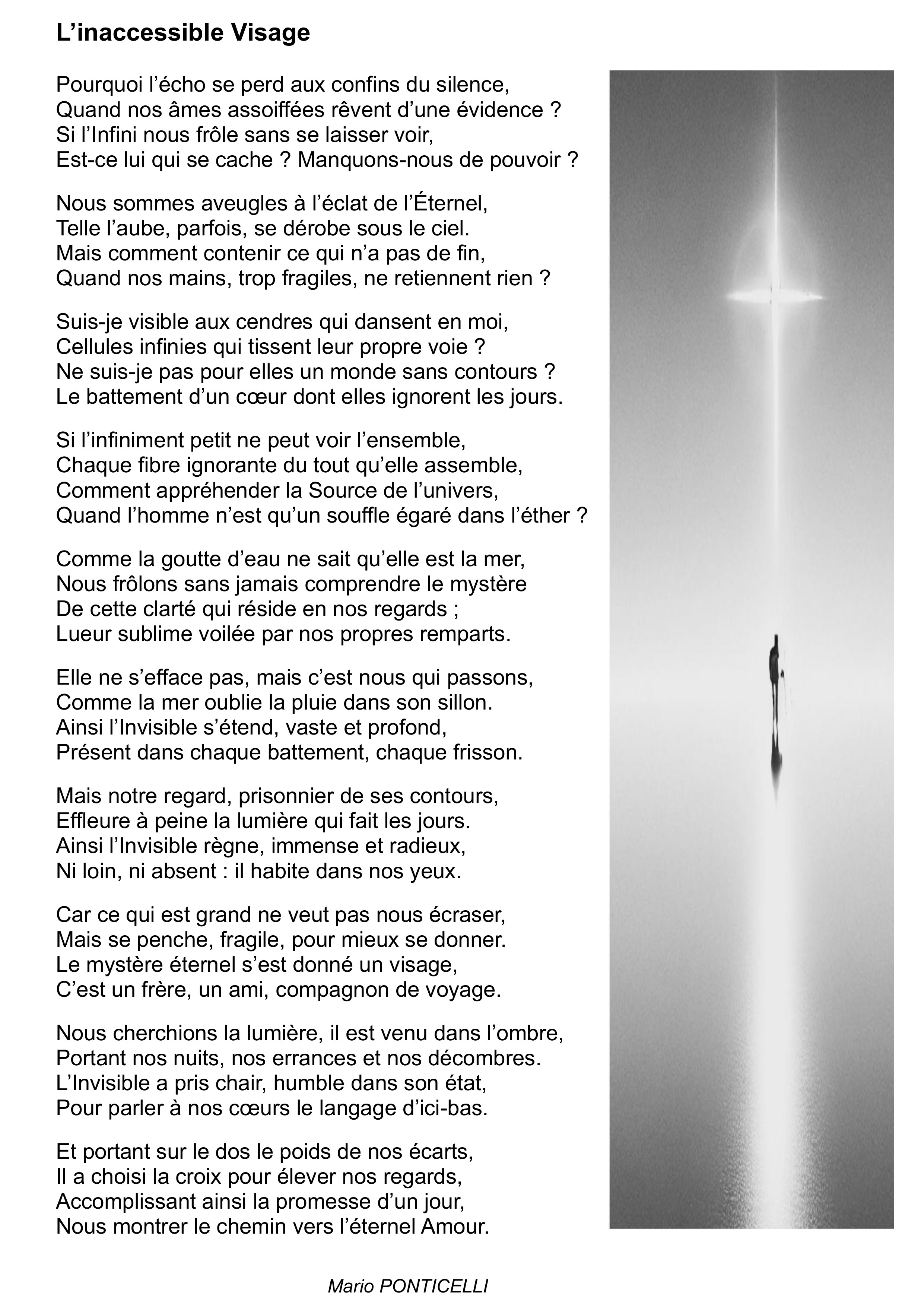 (Poème) L’inaccessible Visage 9 février 2025/dans Homélie/Prières /par Mario Ponticelli(Poème) http://www.paroissesaintgall.fr/wp-content/uploads/2025/03/IMG_5467.png 1008 1004 Mario Ponticelli http://nicolasberthel.fr/gall/wp-content/uploads/2016/07/gall-logo-small-1-300x162.png Mario Ponticelli2025-02-09 23:06:532025-03-03 11:04:16(Poème) L'inaccessible Visage