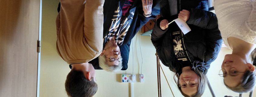 Les enfants, très enthousiastes, avaient préparé une jolie carte qu’ils ont lus avec émotion à Thérèse, surprise et très touchée de cette attention. Quelques petits présents, notamment un lièvre en chocolat a déclenché des souvenirs que Thérèse a partagés avec tous dans de joyeux fou-rires.