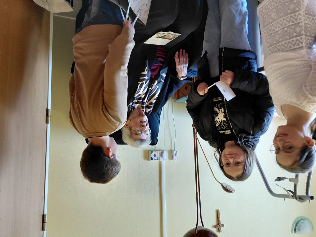 Les enfants, très enthousiastes, avaient préparé une jolie carte qu’ils ont lus avec émotion à Thérèse, surprise et très touchée de cette attention. Quelques petits présents, notamment un lièvre en chocolat a déclenché des souvenirs que Thérèse a partagés avec tous dans de joyeux fou-rires.