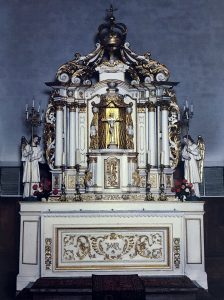 1755 : l’église de Kirchnaumen, entièrement restaurée reçoit son superbe Maître-autel par Nicolas Greff d’Altwies dans le plus pur style baroque. Il a donc aujourd’hui plus de 250 ans.