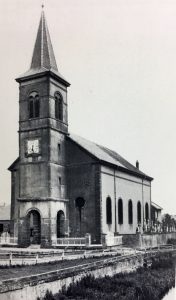 1906 Lors d’un orage, à 7 heures du matin, le clocher brûle complètement et par chance tombe devant le bâtiment et non dans l’église. Les cloches ont éclaté et l’horloge a été écrasée. L’achat de nouvelles cloches s’impose, le conseil municipal et le conseil de fabrique s’unissent pour financer cet achat. Le dimanche 7 juillet 1907, les trois nouvelles cloches sont bénites. Elles portant les noms de Hubert pour la grosse cloche, Anna pour la seconde et Jean-Marie pour la troisième.