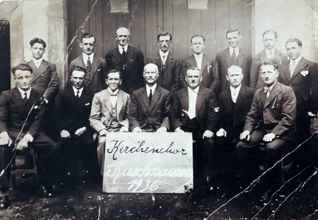 Chorale de Kirschnaumen en 1936 (photo parue dans un journal de l’époque)