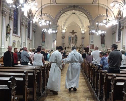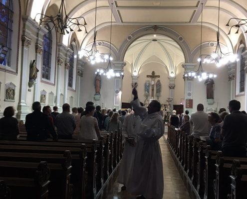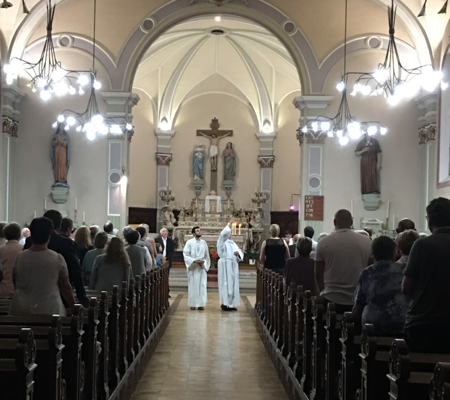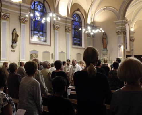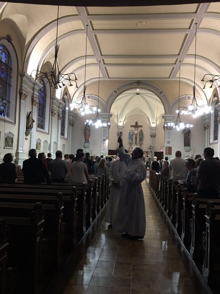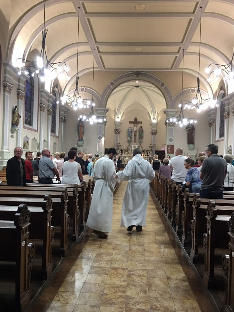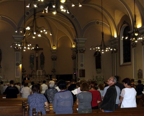 Voici quelques photos prises par M. Toun lors de la bénédiction des lustres de l’église de Waldwisse (voir cette actualité). Pour rappel cette célébration a eu lieu le dernier samedi du mois d’août, sur le thème de la lumière, elle a été suivie par un verre de l’amitié offert par le conseil de fabrique.