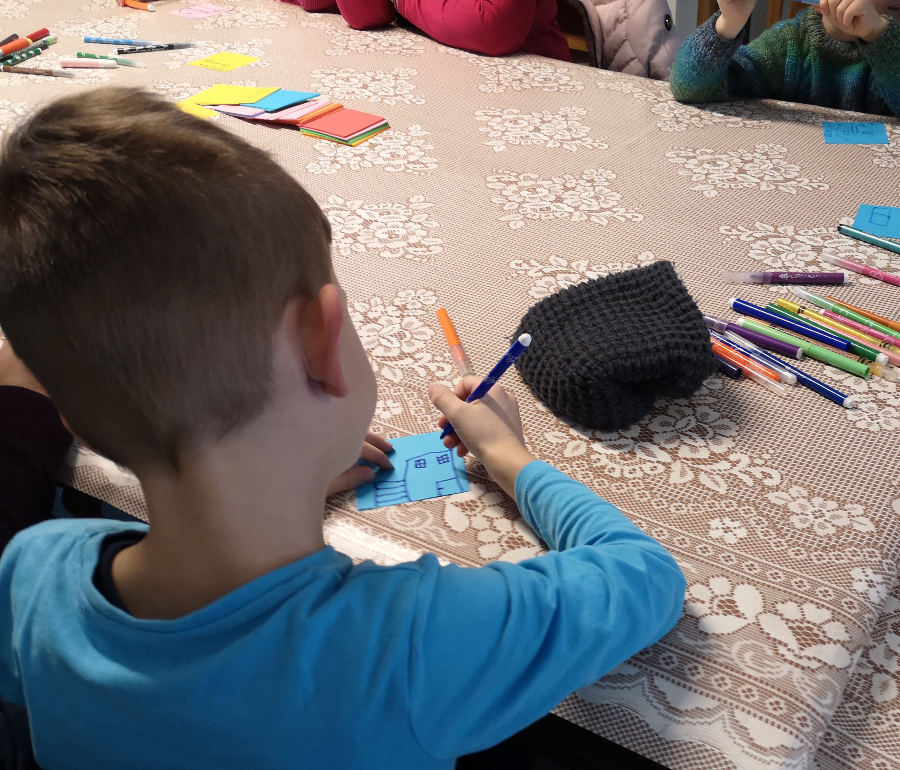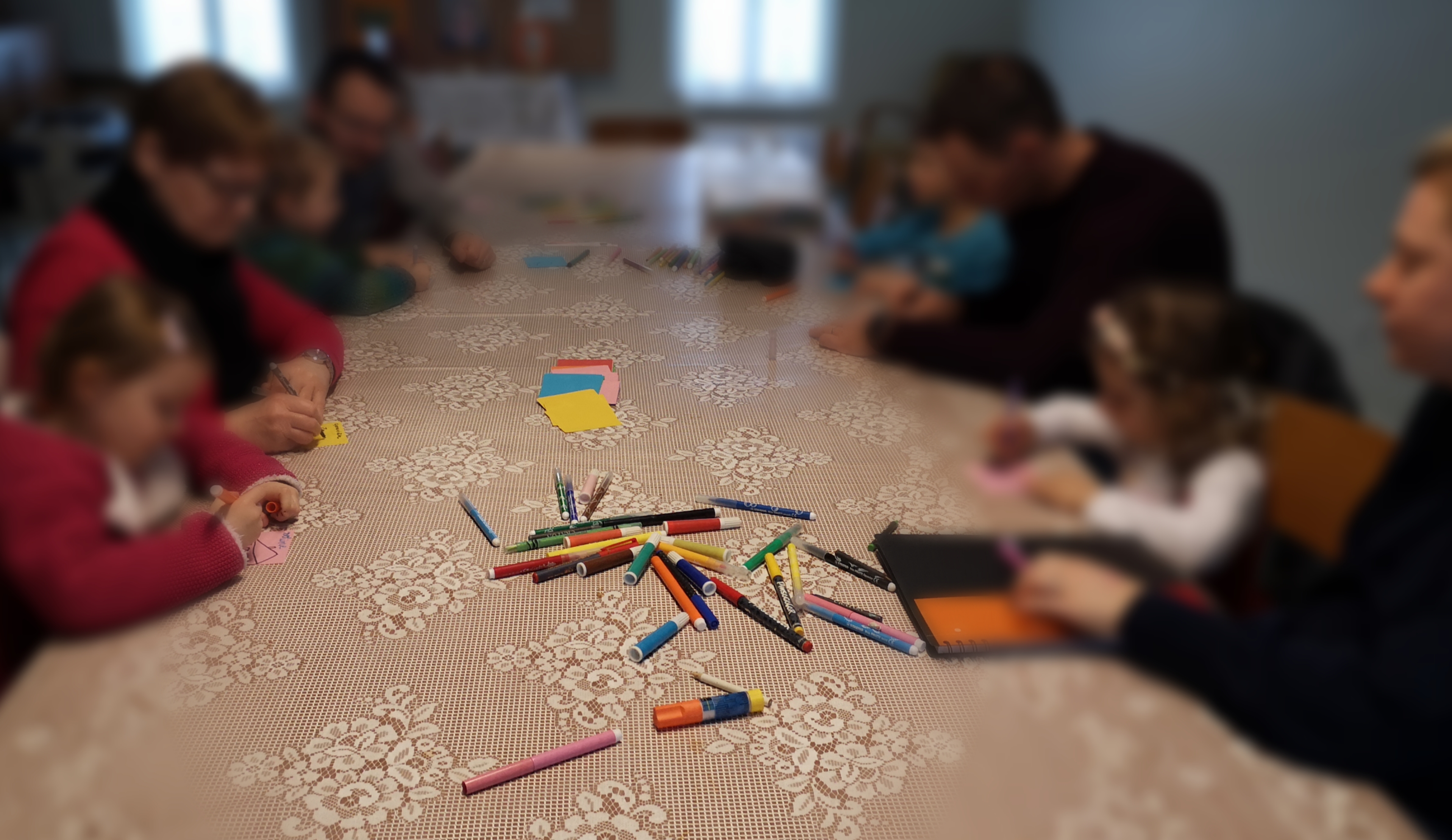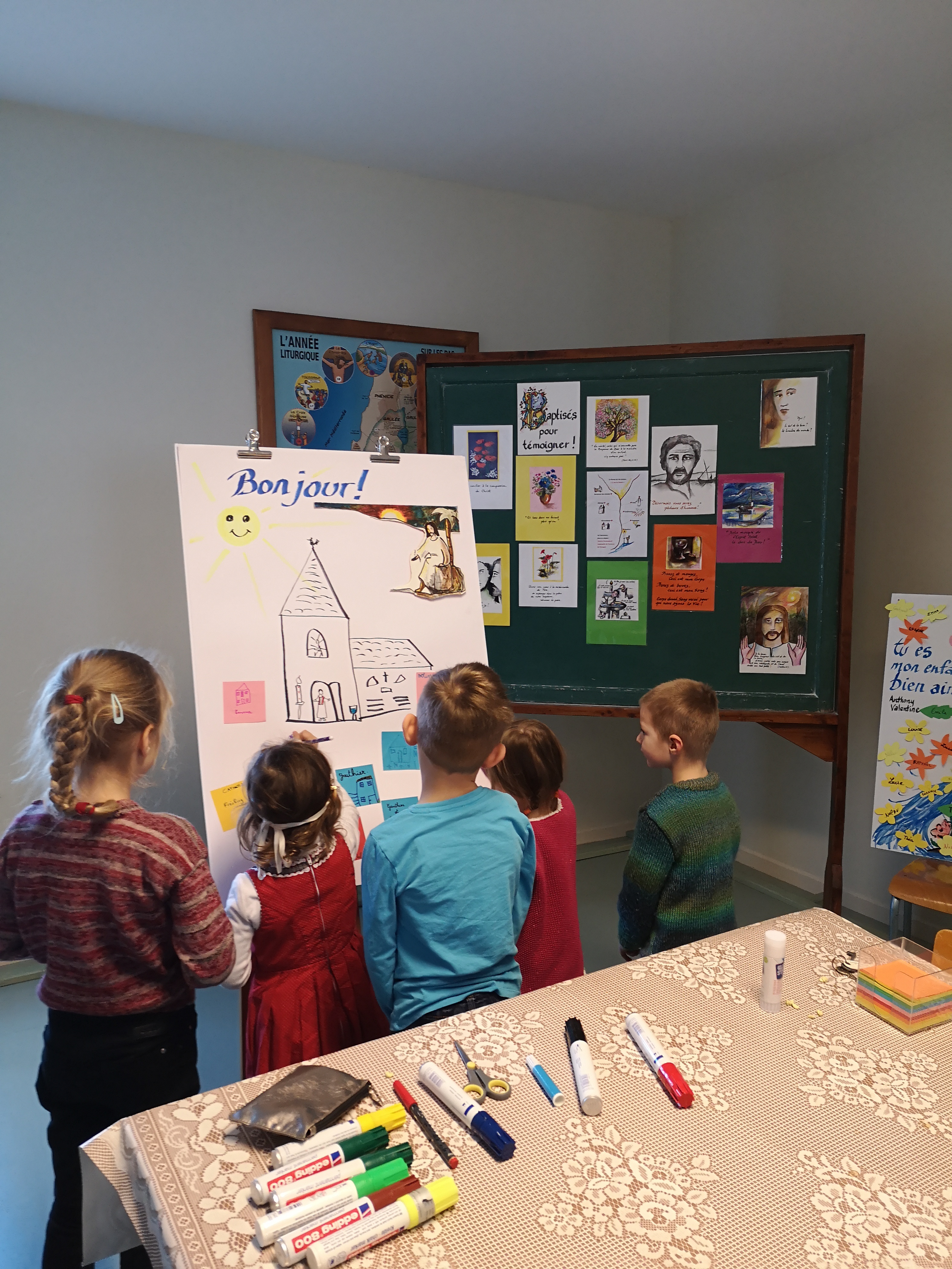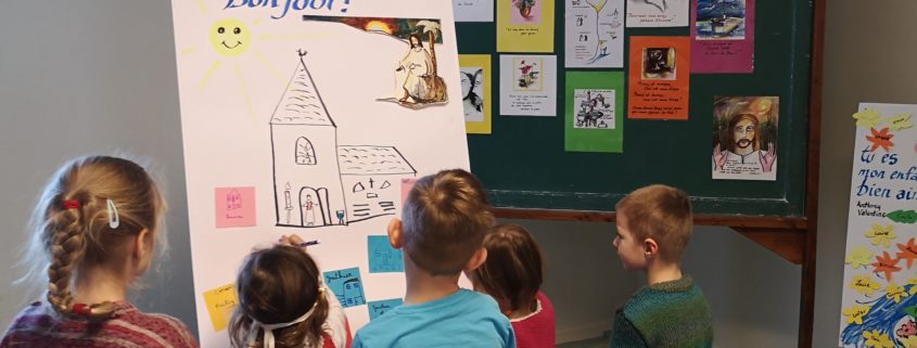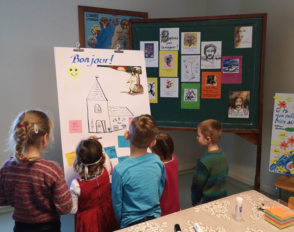 Première rencontre de l’éveil à la foi dans la communauté St Gall, merci aux parents et grands parents d’avoir vécu ce beau moment avec les enfants : la découverte de Jésus qui nous accueille et nous aime ! Chacun a dessiné sa maison, pour ensuite découvrir la grande maison de Jésus qui nous invite tous chez lui ! Prochain rendez-vous le samedi 4 avril à 10h à Kerling . N’hésitez pas à faire connaître ce rendez-vous pour les petits, les bien aimés du Seigneur .