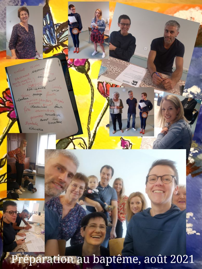 La préparation au baptême dans la communauté St Gall ne prend pas de vacances ! Très belle rencontre ce samedi 7 août avec Étienne et Sylvie, parents de Camille, Charles et Célia , parents d'Arthur et Tatiana et Sébastien, parents de Tom. Une joie supplémentaire, nous accueillons Éliane qui rejoint l'équipe ! À partir de L’Évangile de Saint Marc, ces jeunes familles venues de paroisses différentes découvrent Jésus qui se fâche si on n'accueille pas les enfants, et du coup, comprennent qu'ils sont les bienvenus dans leur communauté avec ce beau cadeau qu'ils font à leurs enfants : le sacrement du baptême ! Merci à tous ❤️