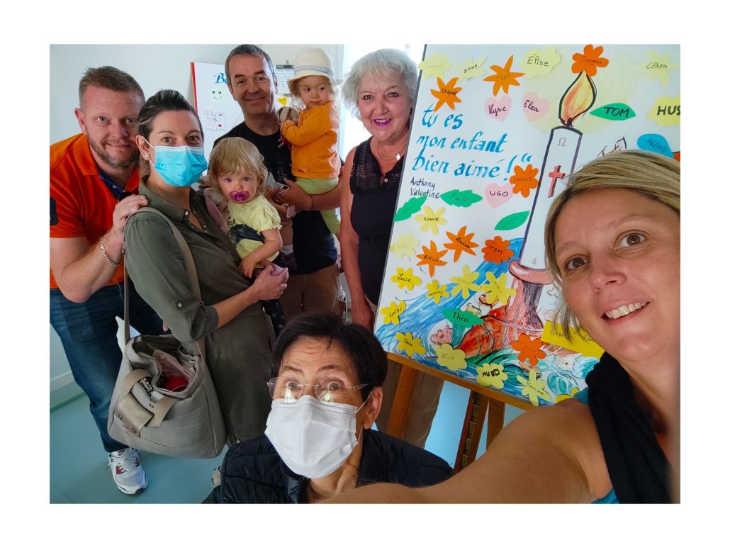 Les parents de Margaux et Alice se sont retrouvés ce samedi à la préparation au baptême de leurs enfants. En fait, ils sont voisins et ne s'attendaient pas à se rencontrer là ! Une belle manière de créer des liens pour réaliser ensemble le petit livret du déroulement de la célébration. L'horaire a été largement dépassé tellement l'échange était captivant et les questions nombreuses sur l'Évangile partagé ! Merci à tous. L'équipe baptêmes