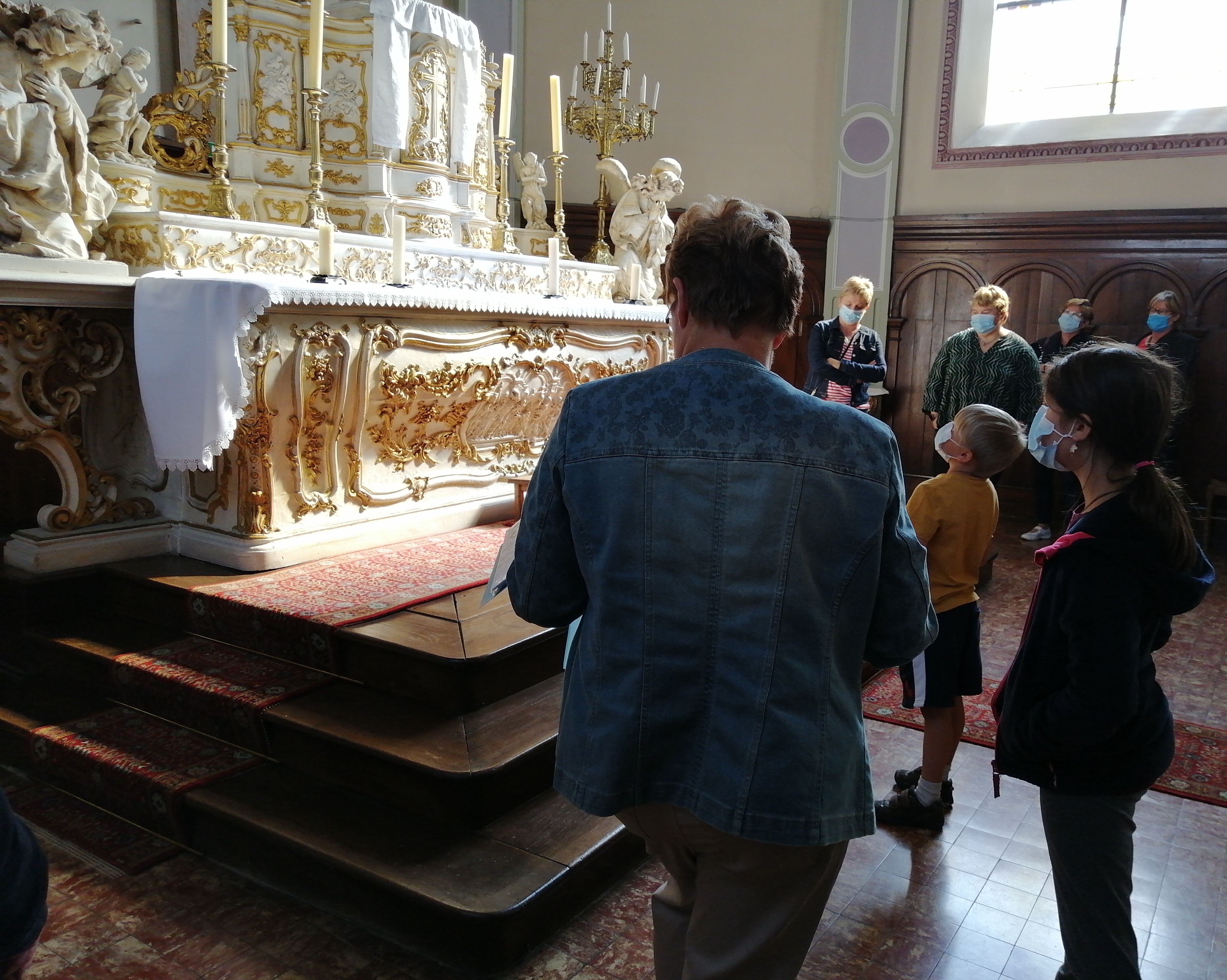 Les visites guidées nous ont permis de cheminer ensemble du parvis au chœur de l’édifice religieux ; nous avons redécouvert l’historique et quelques caractéristiques parfois surprenantes de cette belle et lumineuse église de campagne : la complexité des démarches pour sa reconstruction en 1828-1829, l’implication de nombreux villageois, la persévérance dans le temps ; aujourd’hui, l’église Sainte Catherine s’affirme hautement dans le paysage et suscite de l’admiration tant par la beauté de ses vitraux , du Maître- Autel, du baptistère ainsi que par ses inscriptions gravées dans le sol : MAISON DE DIEU-PORTE DU CIEL. »