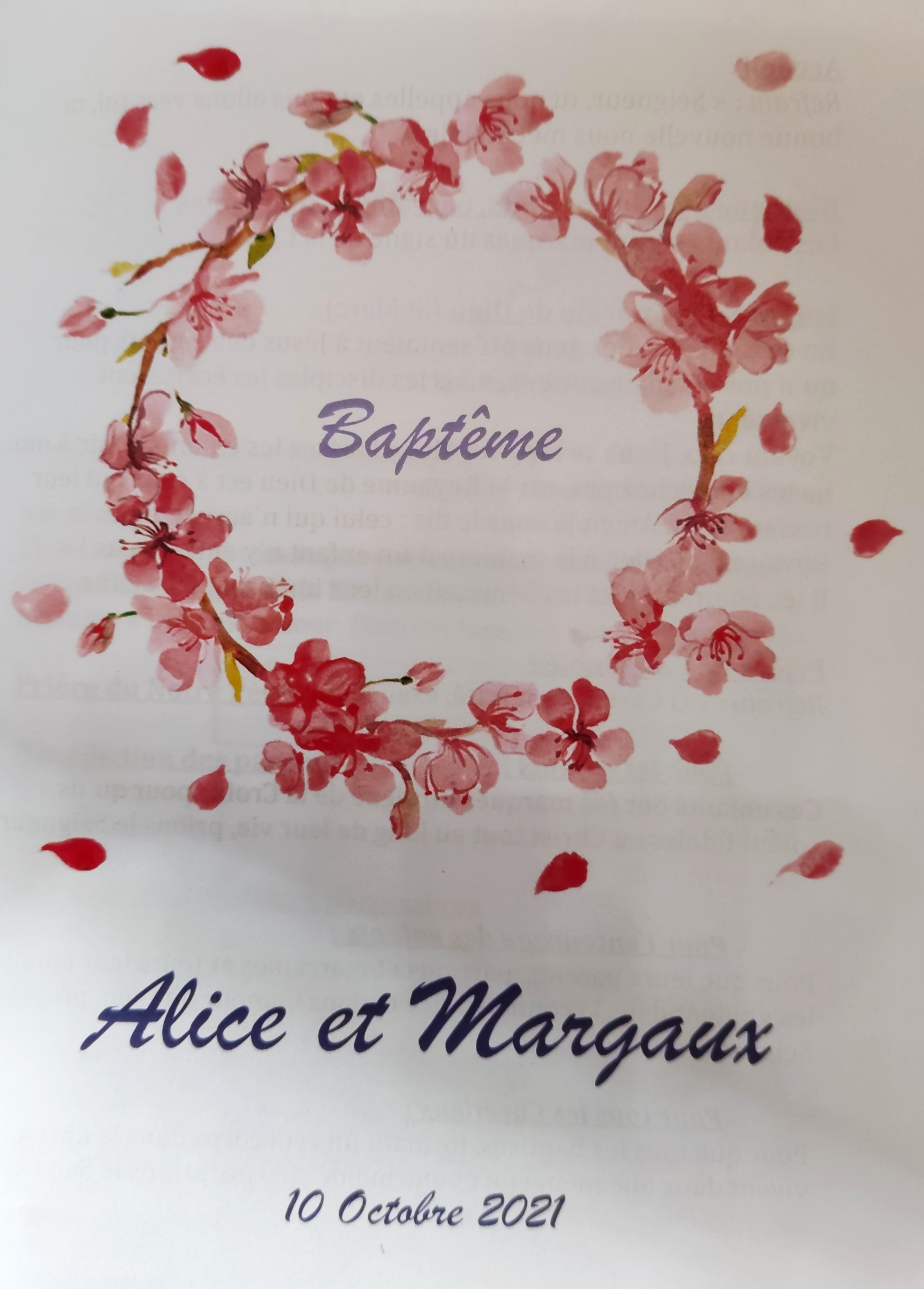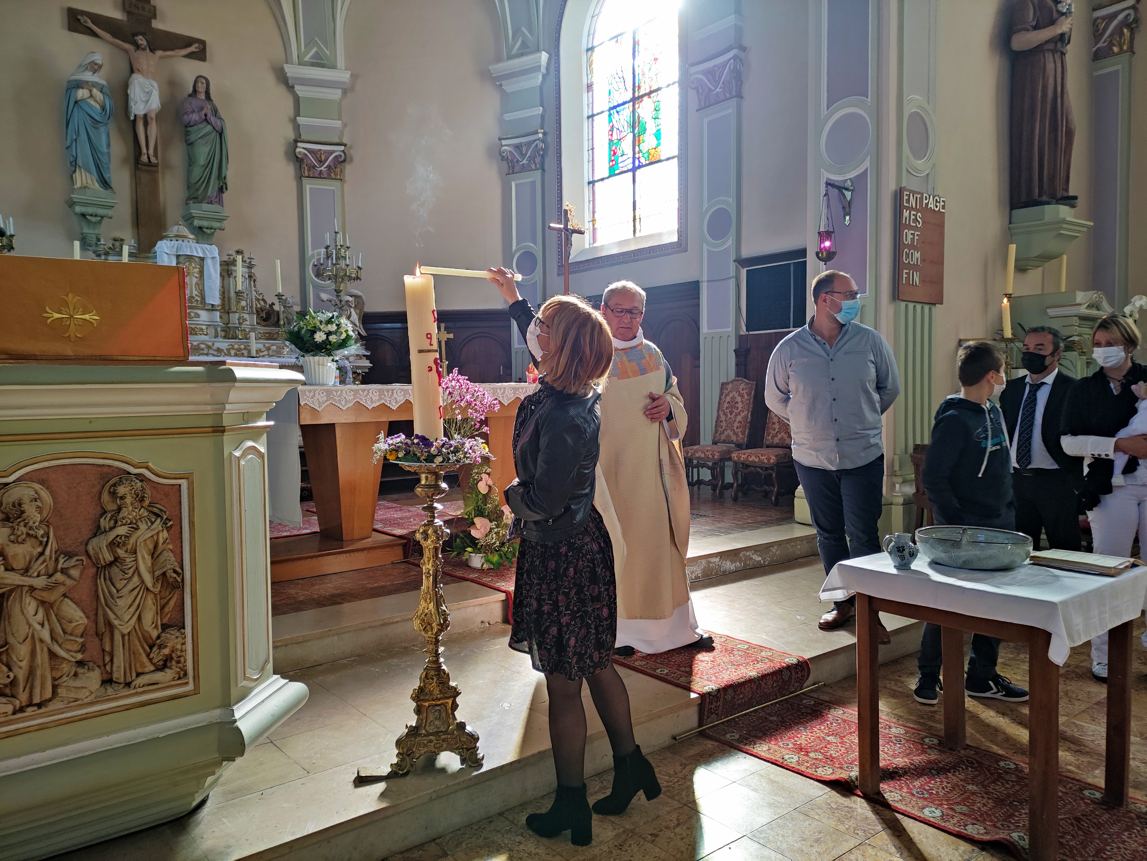 Dimanche 10 octobre, Margaux et Alice sont entrées dans la famille des chrétiens par le baptême, après la messe dominicale. Un  grand merci aux quatre membres de la chorale de Waldwisse qui ont accepté de soutenir les chants de l’assemblée, un vrai et beau témoignage d’accueil dans notre communauté, pour ces deux jeunes  familles.