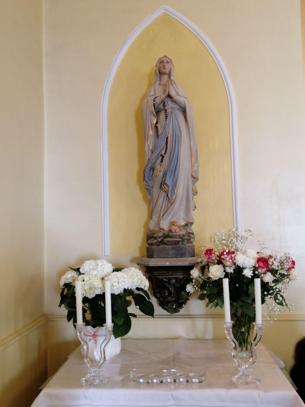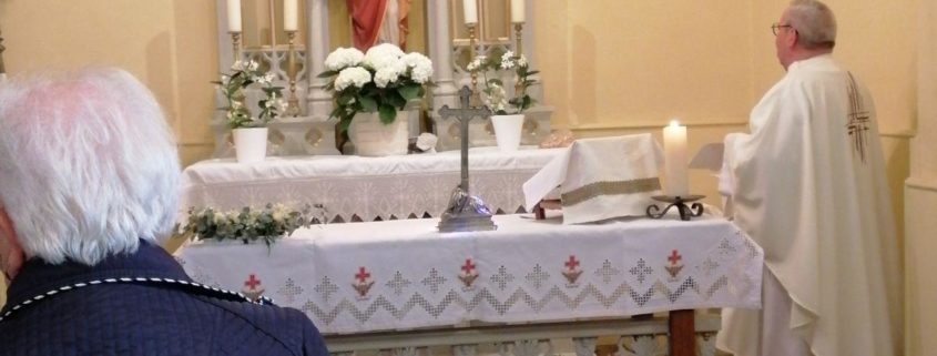 Pour la circonstance, la chapelle, très accueillante, s’est parée de roses, de lys et d’hortensias ; en présence des enfants de chœurs et de l’organiste, la célébration solennelle s’est déroulée dans la joie, la louange et la ferveur