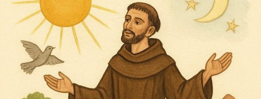 • L’association avec saint François est apparue plus tard, notamment après sa traduction en anglais pendant la Première Guerre mondiale.