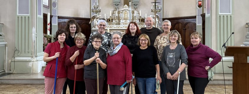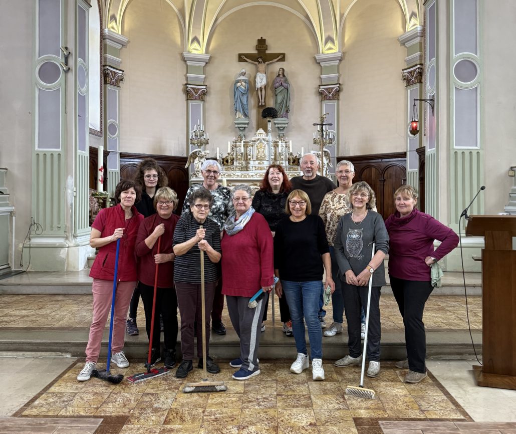 Ce mercredi 22 octobre, plusieurs bénévoles de notre paroisse se sont retrouvés dans la bonne humeur pour le grand nettoyage d’automne de l’église. Armés de balais, serpillières et chiffons, ils ont redonné tout son éclat à notre lieu de prière, en prévision des célébrations à venir.