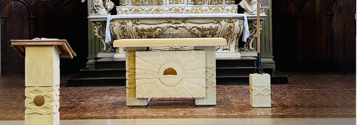 En mars dernier, pour répondre à la demande de l’abbé Vincent Naumendorff, le conseil de fabrique a confié au sculpteur local Toun la mission de réfléchir à la réalisation d’un nouvel autel en remplacement de l’autel provisoire installé en 1967.
