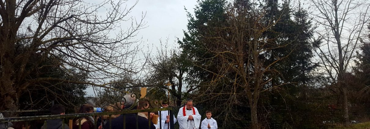 Merci les jeunes pour ce beau chemin de croix vendredi 30 mars à Halstroff. Malgré la pluie, nous avons marché et déposé une croix expliquant chaque station sur le bord du chemin, avec les très beaux textes choisis. Merci aussi aux adultes qui les ont entourés. Un témoignage de « grand » : » quel bonheur d’entendre les enfants entonner le Notre Père et le Je vous salue Marie !