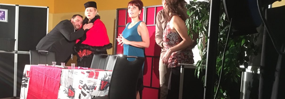 /dans Actualités /par Mario PonticelliSamedi 12 novembre à 20h30 la troupe « Les enfants du Paradis » de la MJC de Yutz a présenté sa nouvelle pièce « Boulette russe » à la salle des fête de Waldwisse. La représentation à guichet fermé, organisée conjointement par l’EAP et le conseil de fabrique de Waldwisse était offerte gracieusement par la troupe. L’ensemble des bénéfices (plus de 800 euros) va permettre d’animer la vie de la communauté de paroisses Saint Gall du plateau de Sierck. Malgré le fait que la représentation ait eu lieu très tôt dans la saison (troisième représentation publique de la pièce) les comédiens ont enthousiasmé l’assistance par la qualité de leur jeu et le très haut niveau de la mise en scène. La pièce est une création originale de Jean-Luc Roy, membre de la troupe, inspirée du théâtre de boulevard ainsi que des créations de la troupe du Splendide, elle allie comédie de situation et dialogues à la fois piquants et terriblement drôle. On s’attache au personnage de Timothée (joué par Guillaume Hosy), joueur malchancheux qui doit se sortir d’un mauvais pas avec l’aide de sa tendre fiancée (Christel Socha) et de sa très pieuse belle maman (Céline Denninger). Les scènes s’enchaînent sans que le rythme ne retombe et on retient son souffle jusqu’au dénouement final.