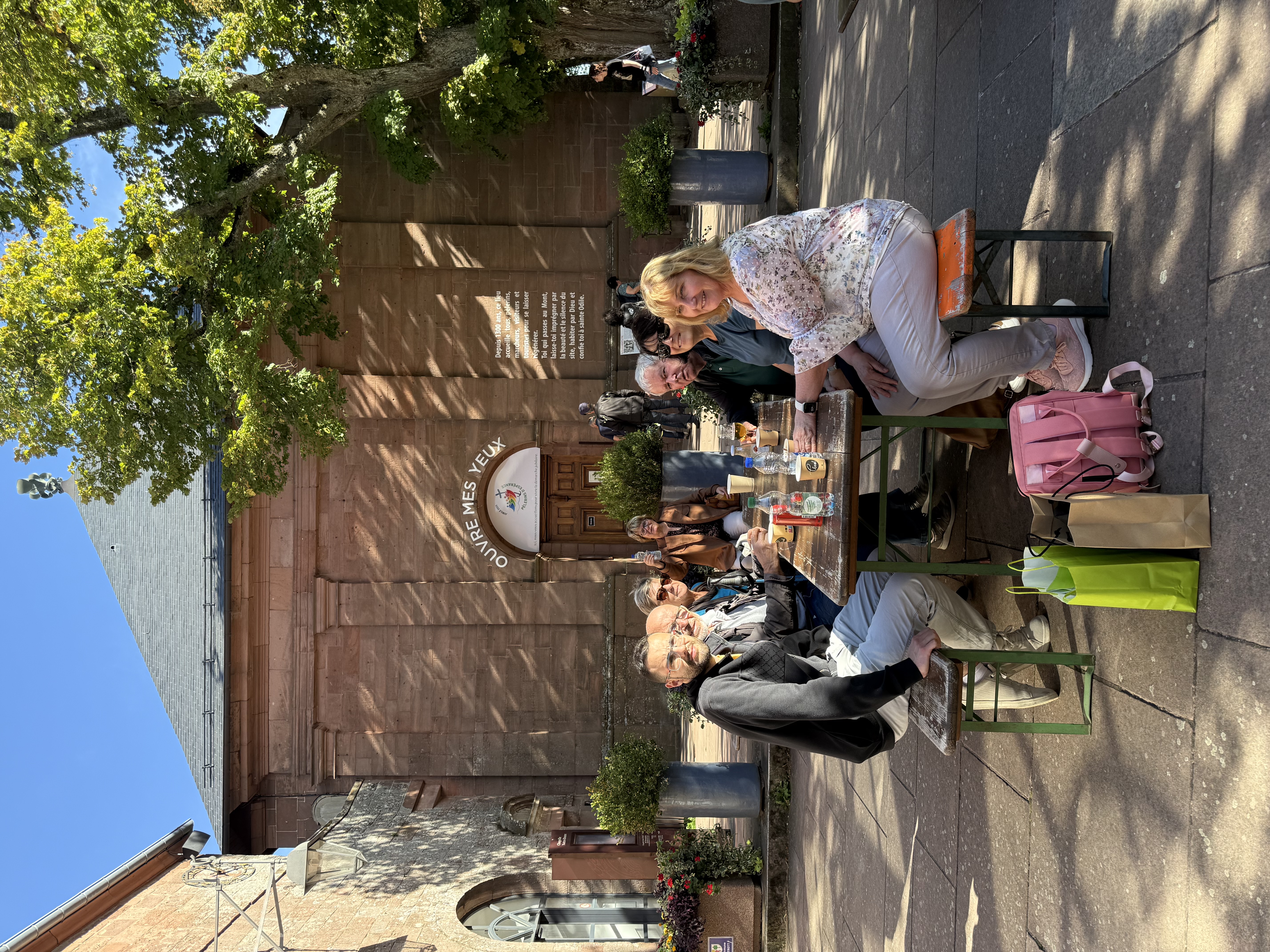 Avant un passage incontournable par la boutique pour rapporter quelques souvenirs. Nos pèlerins ont pris un moment pour souffler. Certains se sont installés à l’ombre d’un arbre pour profiter de la quiétude du lieu, tandis que d’autre ont partagé un verre, prolongeant ainsi la convivialité de la journée.
