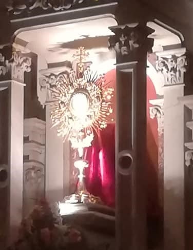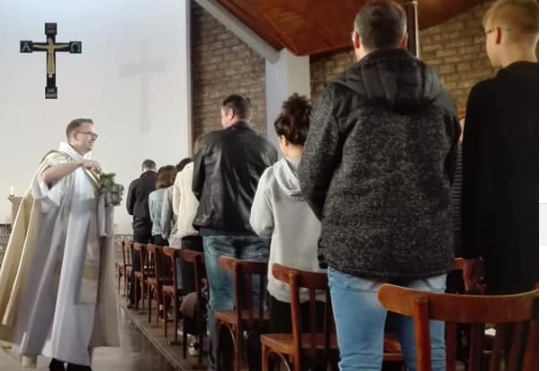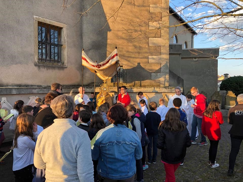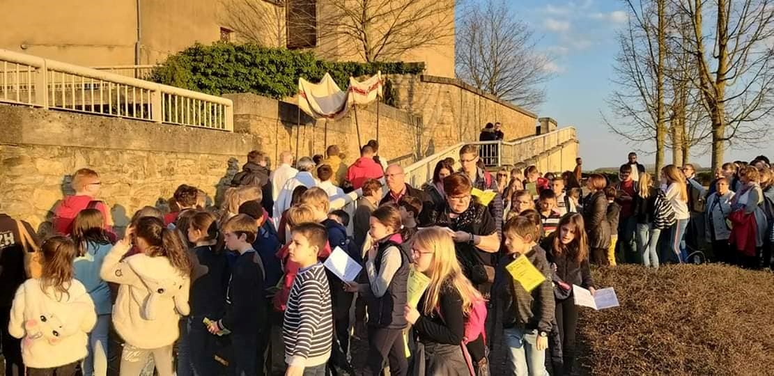 C’est à la suite du Saint Sacrement que le chemin d’évangile a été vécu à l’extérieur de l’église avec les membres de la communauté de paroisses N.D. de l’Espérance.