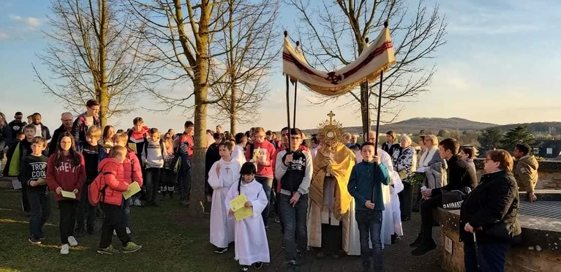Dimanche 28 avril, en l’église Saints Pierre et Paul d’Halstroff, 7 jeunes de notre communauté de paroisses ont reçu le sacrement de l’Eucharistie.