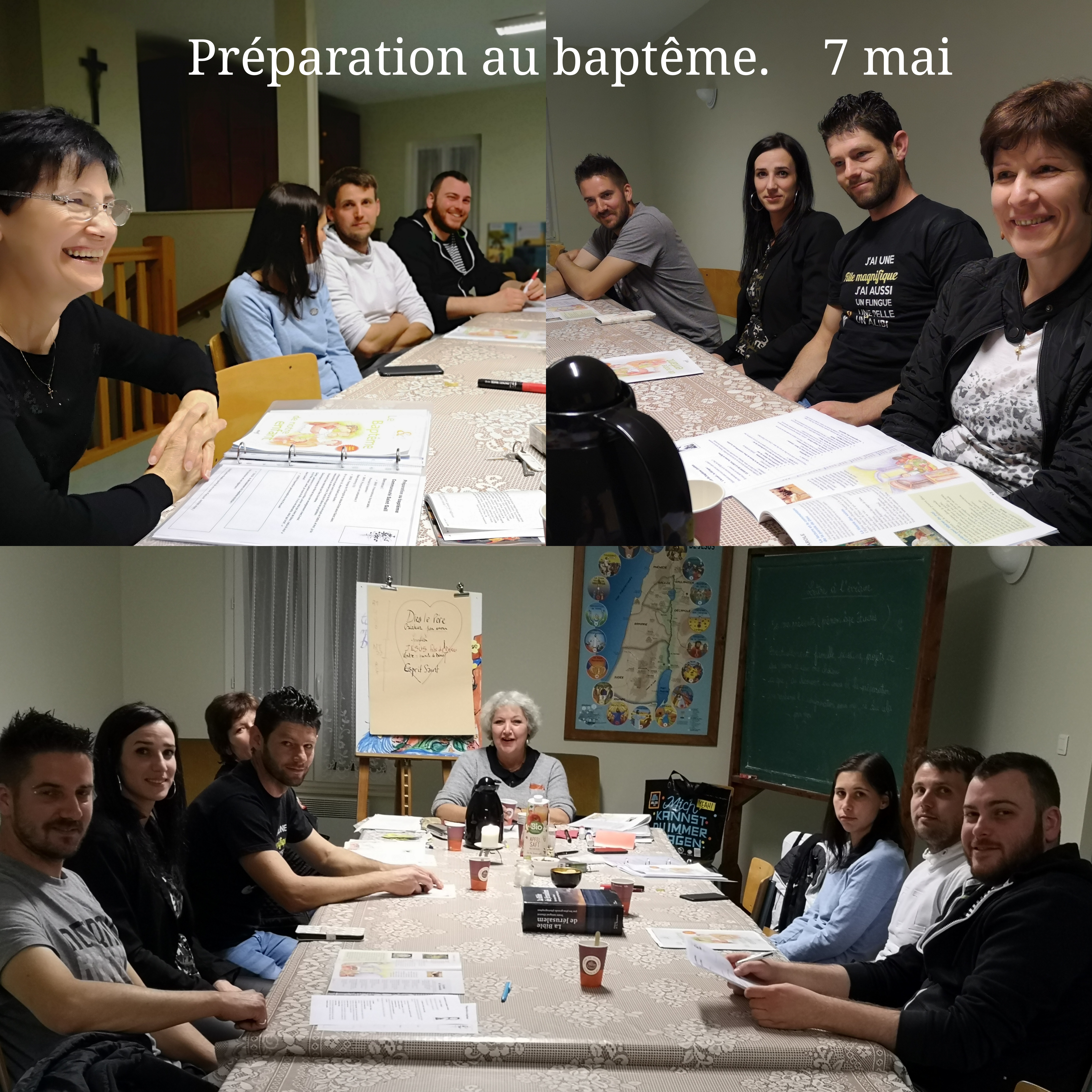 Belle rencontre de préparation au baptême ce soir. C’est beau de voir ces jeunes parents redécouvrir le Christ en travaillant son Évangile. Un des parrains a vraiment eu un coup de cœur pour son rôle, étonnant… Et les deux « stagiaires » comme elles se nomment, sont au top !