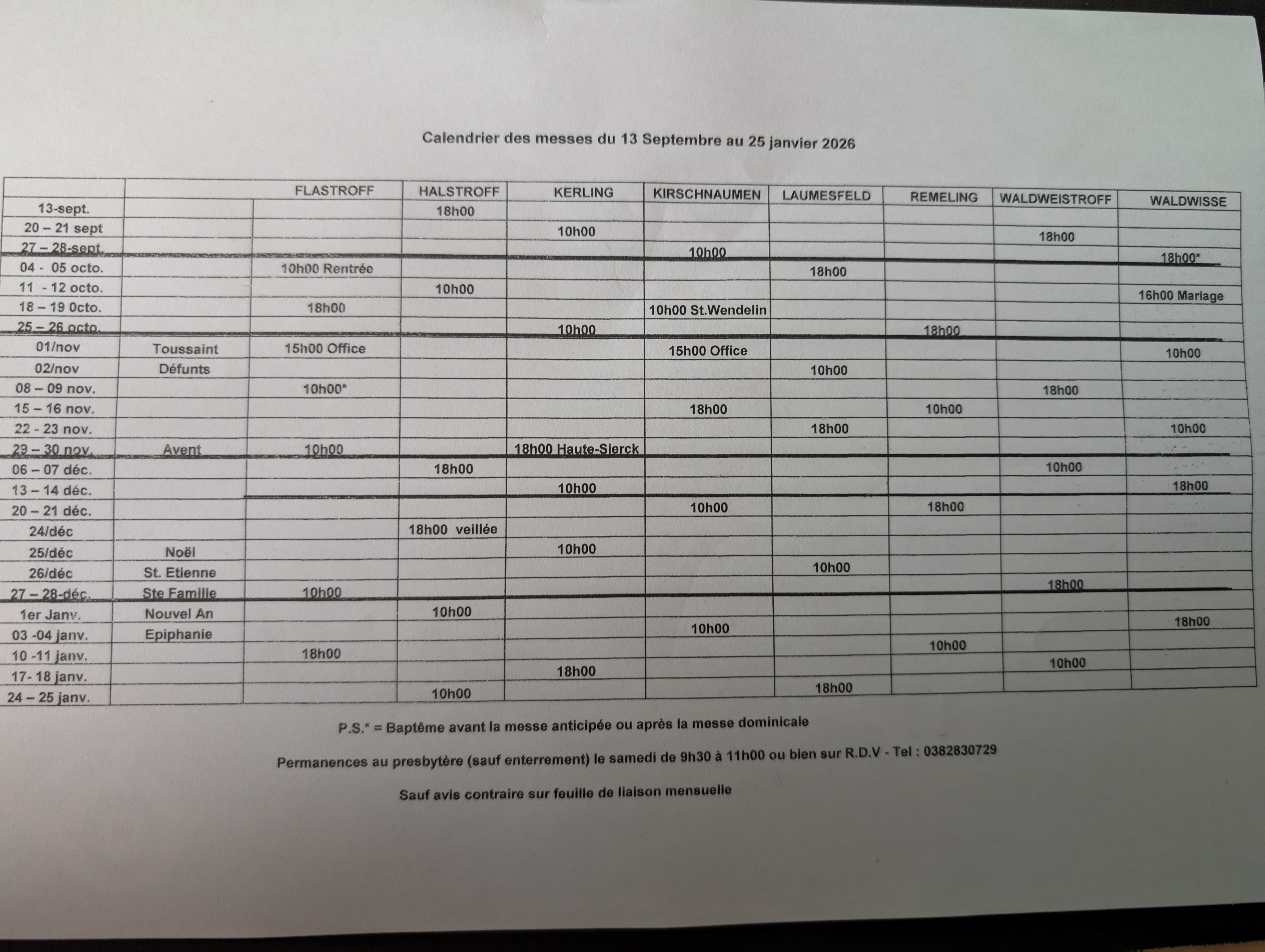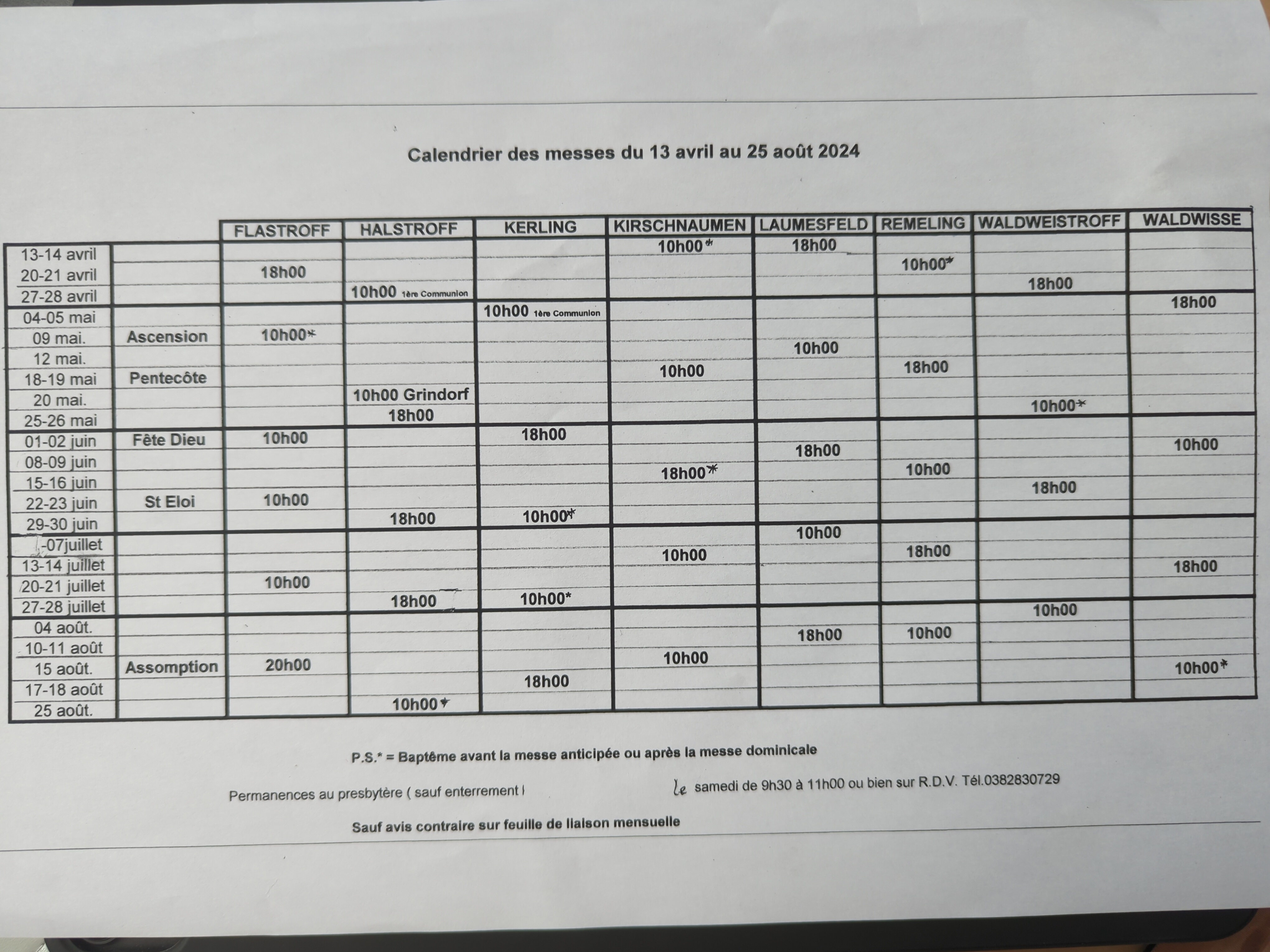 15H00 FLASTROFF : Office (l’office à Kirschnaumen est annulé)