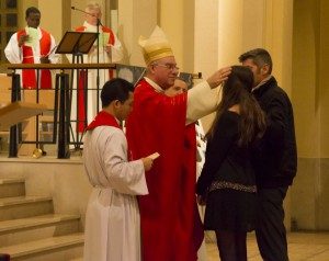 Le jour de la confirmation le chrétien reçoit le Saint Esprit comme don. Celui-ci se manifeste par un signe fait par l’Évêque ou un prêtre délégué. Signe tout simple : le front de chaque confirmand est marqué par le signe de la croix avec de l’huile parfumée qu’on appelle le saint chrême accompagné des paroles :